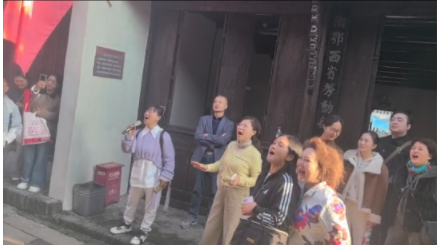 当日下午,音乐学院教师团队在参观瞿家湾革命旧址时,墙面上一首《洪湖赤卫队》插曲《看天下劳苦人民都解放》的歌词引起了老师们的注意。面对这熟悉的旋律,教师们情不自禁地即兴演唱起来。