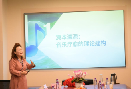 讲座中,殷瑰姣教授凭借深厚的学术功底与生动的表达,系统解析了音乐疗愈的科学原理与实践路径。她从声波振动与人体生理节律的共振效应切入,详细阐释特定频率的音乐如何通过听觉系统影响脑电波、调节自主神经系统,引导身心进入深度放松状态。